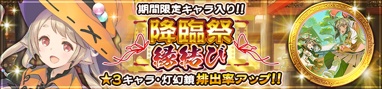本ガチャは、降臨祭限定のキャラクターや灯幻鏡が登場し、さらに★3の排出確率がアップ!
