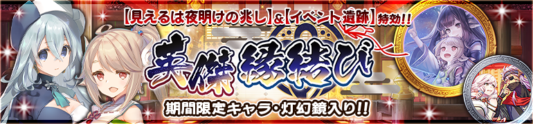 新ガチャ「【見えるは夜明けの兆し】&【イベント遺跡】特効! 英傑 縁結び」開催のお知らせです。