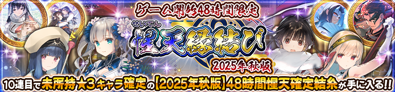 ※キャラクターのラインナップは、「【ゲーム開始48時間限定】惺天 縁結び[2025年秋版]」と同様となります。