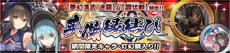 新ガチャ「【夢幻演武 迷霧】&【調伏戦】特効! 英傑 縁結び」開催のお知らせです。