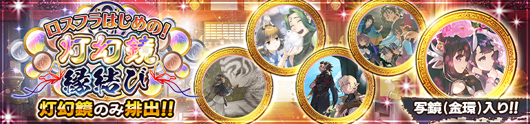 特別な新ガチャ「【写鏡(金環)入り!!灯幻鏡のみ排出!!】ロスフラはじめの!灯幻鏡 縁結び」開催のお知らせです。