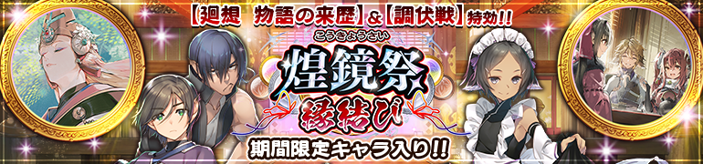 新ガチャ「【廻想 物語の来歴】&【調伏戦】特効! 煌鏡祭 縁結び」開催のお知らせです。